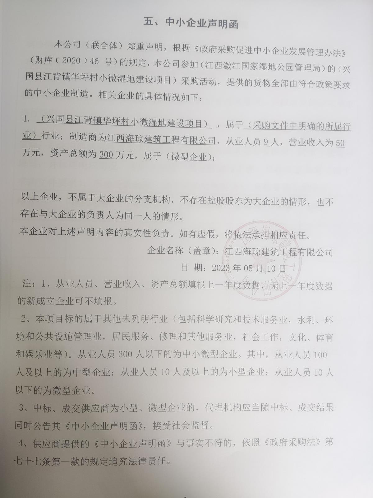 供应商名称:江西海琼建筑工程有限公司
